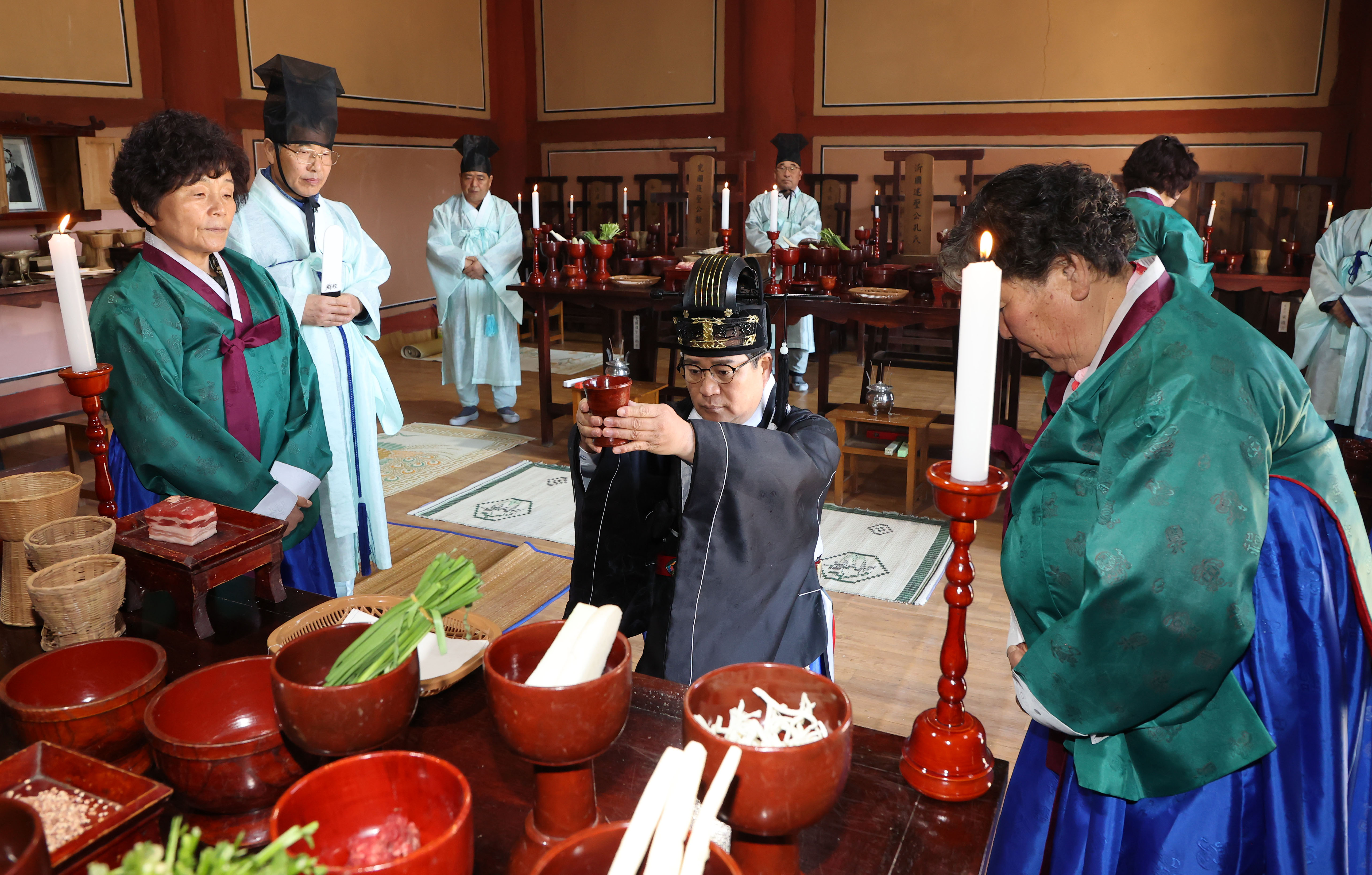 안의향교 석전제 초헌관을 맡은 진병영 함양군수는 “전통문화를 계승․발전하여 향교정신을 이어나갈 수 있게 노력하여 주길 바란다”고 하였다.