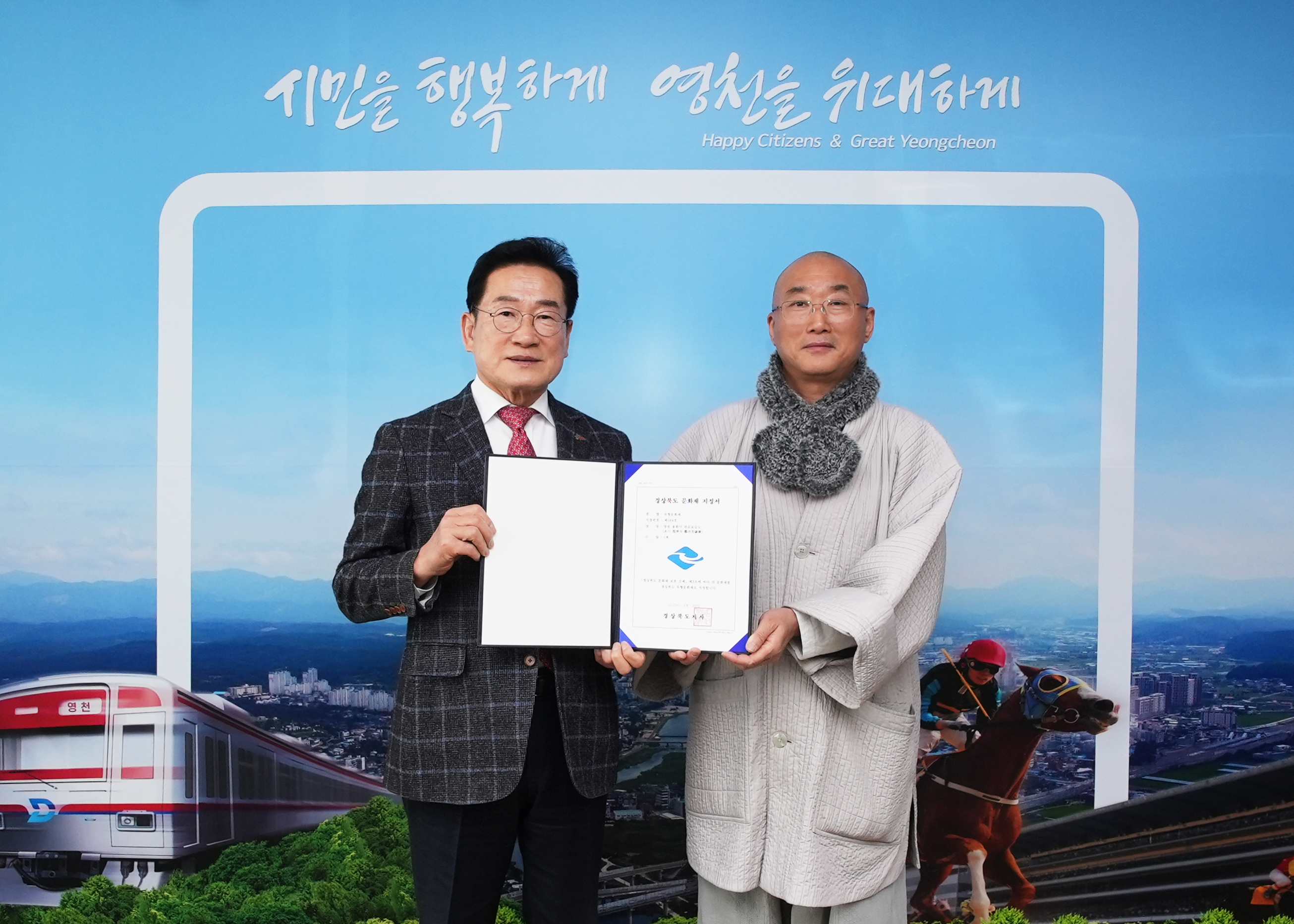 영천시(시장 최기문)는 최근 ‘영천 용화사 관음보살도’ 등 조선시대 불화 3점이 경상북도 유형문화재로 지정됨에 따라 소유자인 용화사 주지 지봉스님에게 문화재 지정서를 전달했다고 밝혔다.