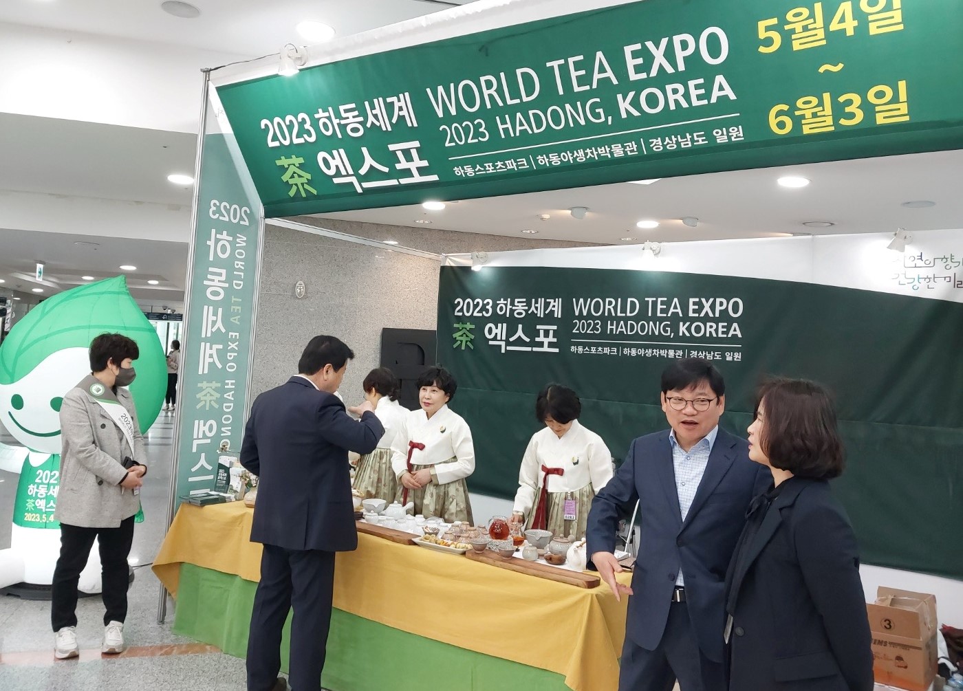 (재)하동세계차엑스포조직위원회(공동위원장 박완수 도지사·하승철 군수)와 하동군이 차(茶) 분야 최초 정부 승인 국제행사인 2023하동세계차엑스포 성공 개최 사전 특별 홍보로 서울 여의도 국회의원회관에서 하동녹차 시음 행사를 열었다.