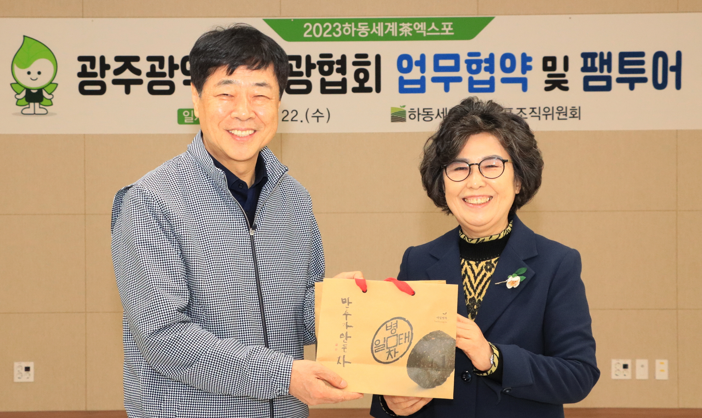 (재)하동세계차엑스포조직위원회(위원장 박완수 도지사·하승철 군수)는 지난 22일 광주광역시관광협회(회장 선석현)와 업무협약을 체결하고 팸투어를 실시했다고 23일 밝혔다.
