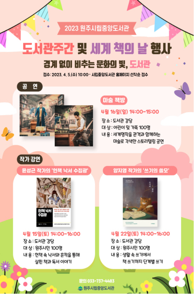 서재흥 원주시립중앙도서관장은 “제59회 도서관 주간 및 세계 책의 날 행사를 통해 시민들이 책으로 소통하는 다양한 문화 향유 기회를 누리길 바란다.”라고 전했다.
