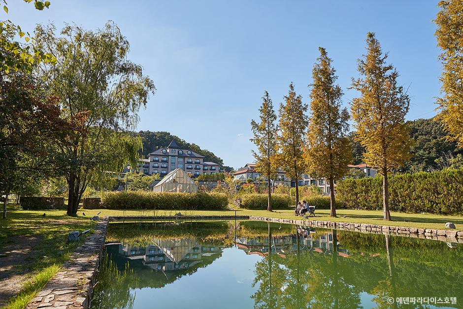 박연진의 결혼식 장면이 촬영된 곳은 메타세쿼이아와 연못이 있는 ‘선셋론’이다. 정원 일부가 나무 담장으로 둘러싸여 프라이빗하면서도 아늑하다. 실제로도 이곳에서 야외 결혼식이나 미니 콘서트 같은 크고 작은 이벤트가 열린다. 드라마가 촬영된 시기는 작년 5월이라 꽃으로 장식된 버진로드나 하객 테이블은 볼 수 없지만, 촬영 당시 배우의 동선을 추측해보는 것만으로도 충분히 재미있다.