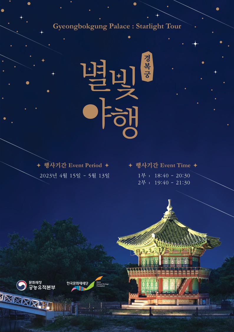 경복궁을 밤에 거닐며 궁중 음식도 체험할 수 있는 ‘경복궁 별빛야행’이 4월 15일부터 5월 13일까지 20일간 하루 2회씩 열린다.