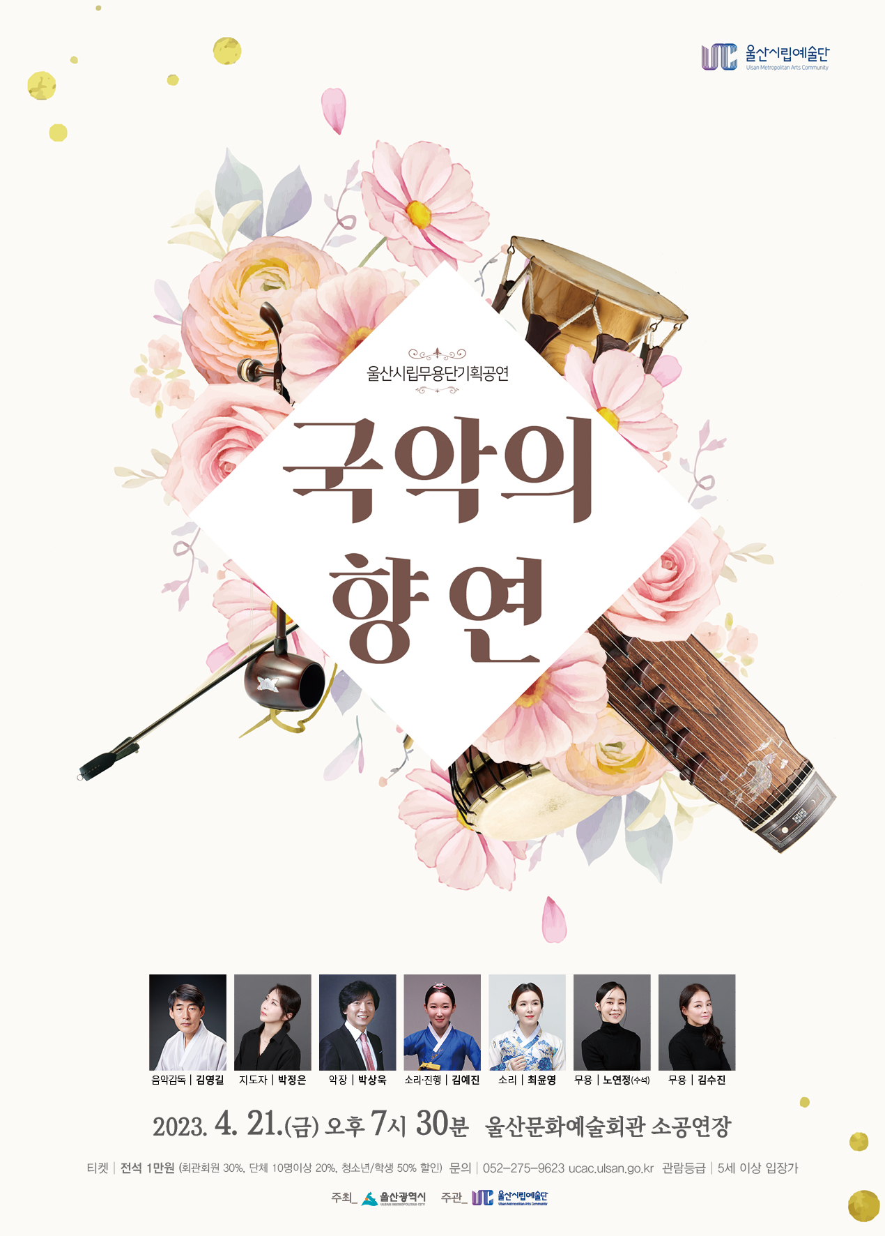 울산시립무용단 기획공연 ‘국악의 향연’이 오는 4월 21일(금) 오후 7시 30분 울산문화예술회관 소공연장 무대에서 열린다.