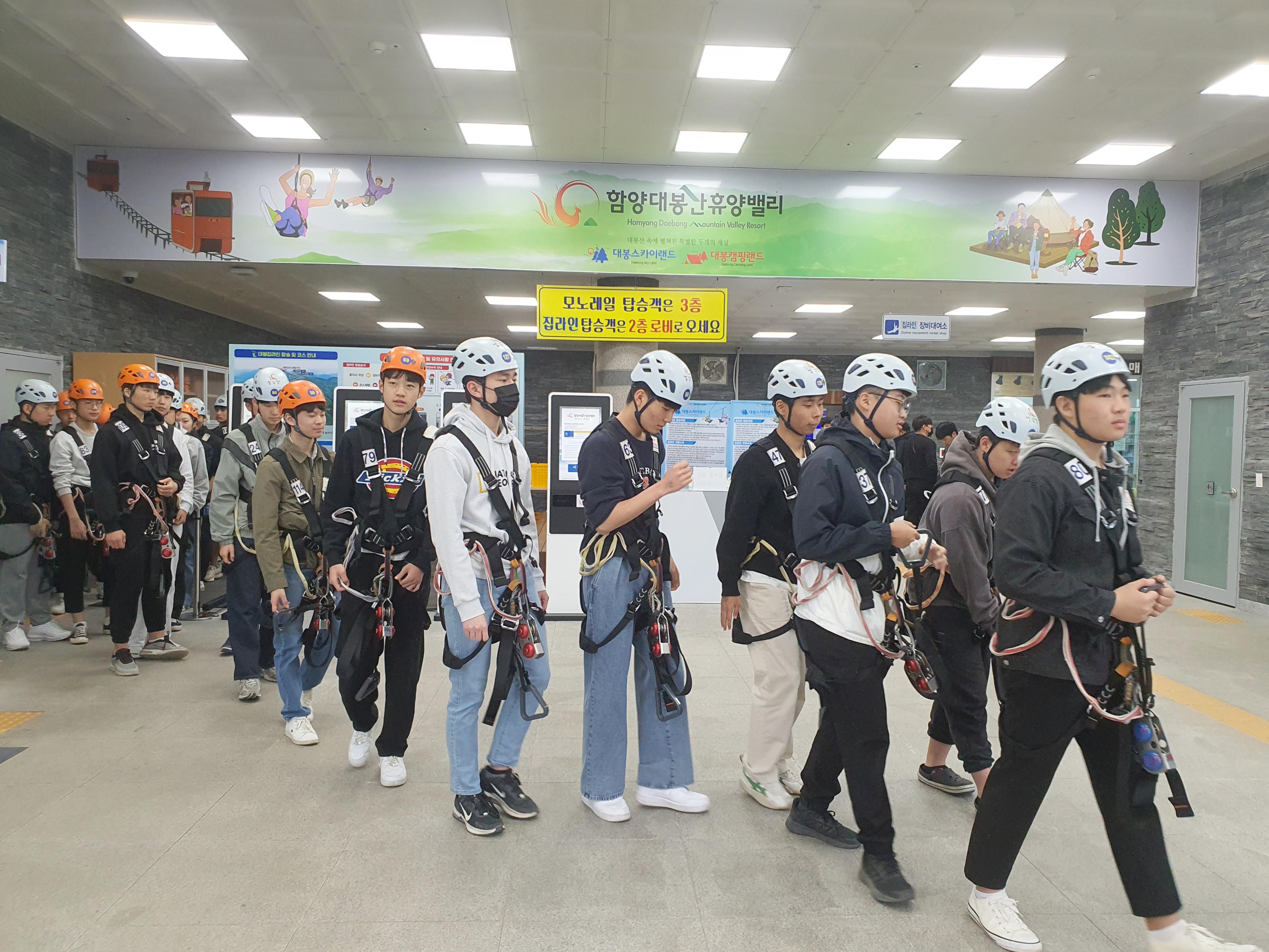 휴양밸리 운영팀은 대구경운고등학교 학생들과 교사들을 포함하여 총 98명에게 집라인 안전장비를 착용하고 탑승시 주의사항과 바른 탑승 자세 등 안전교육을 실시하였으며 체험 학생들과 교사들의 안전 확보를 위해 최선을 다하였다.