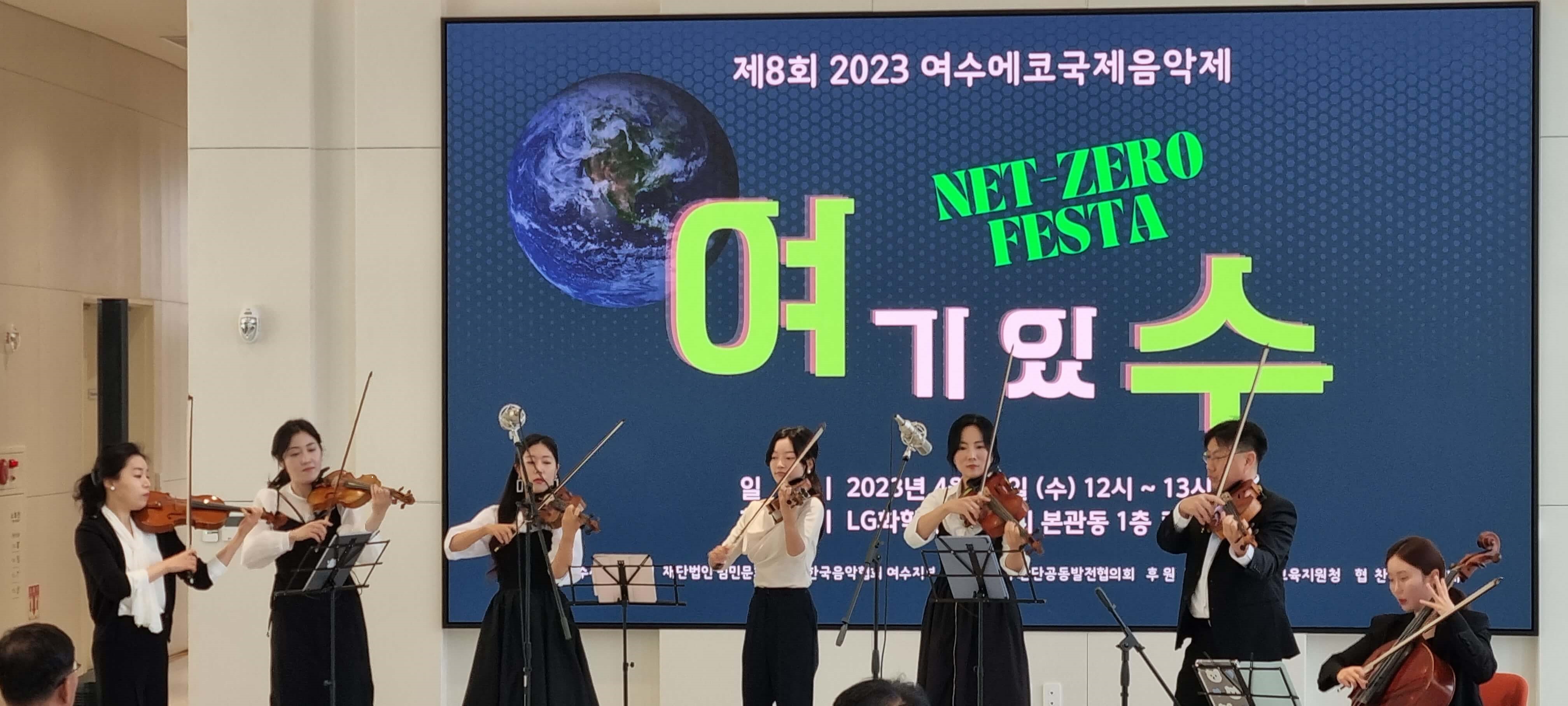여수에코국제음악제(예술감독 김민지, 이하 음악제)는 지난 26일 LG화학 용성2단지 본관동 로비에서 부대행사인 ‘넷제로 페스타 여기 있수’가 성황리에 개최했다.