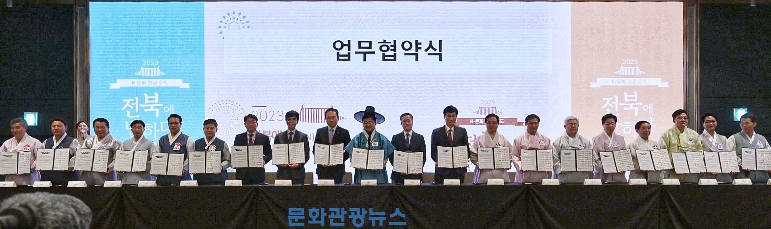 특히 이날 행사에는 관광산업의 지속가능성과 전북관광 활성화를 위해 대상홀딩스(주), (주)현대자동차, (주)하림, (주)하이트진로, (주)제트캡 등 5개 기업이 도·14개 시군과 상생협력을 위한 업무협약을 체결했다.