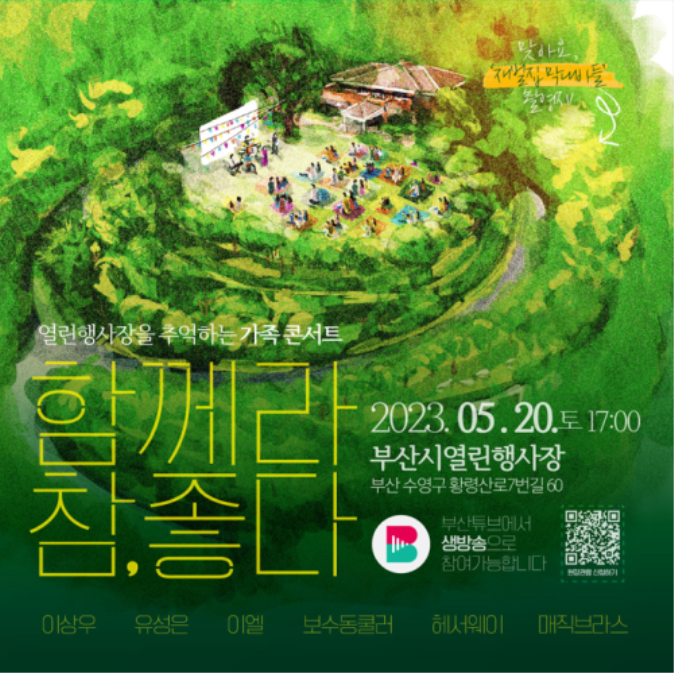 -5.20. 17:00 부산시 열린행사장 잔디밭에서 개최… 리모델링 공사 앞둔 열린행사장의 마지막 모습 추억하고 가정의 달 맞아 가족에게 사랑과 감사의 마음 전하는 기회 제공