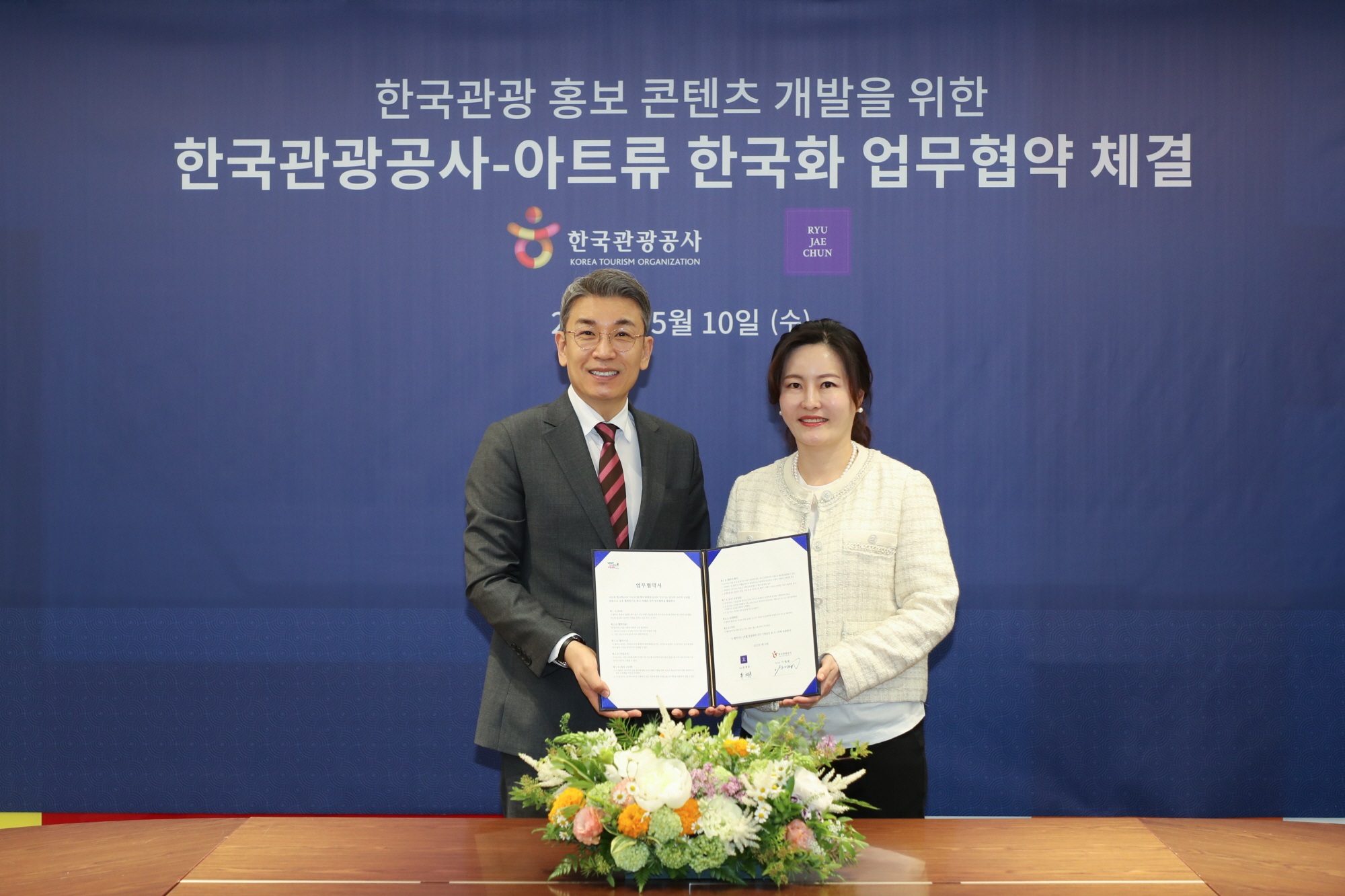 한국관광공사(이하 공사)는 아트류 한국화(이하 아트류)와 5월 10일 한국화(K-수묵) 미디어 아트를 활용한 한국관광 홍보 콘텐츠 신규 개발을 위한 업무협약을 체결했다.