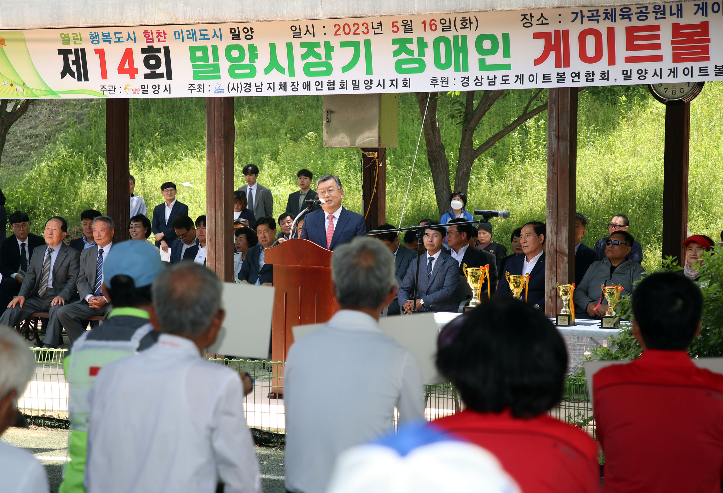 밀양시는 16일 가곡동 체육공원 내 게이트볼 경기장에서 경남지체장애인협회 밀양시지회(회장 김수현) 주관으로 ‘제14회 밀양시장기 장애인게이트볼 대회’를 성황리에 개최했다.
