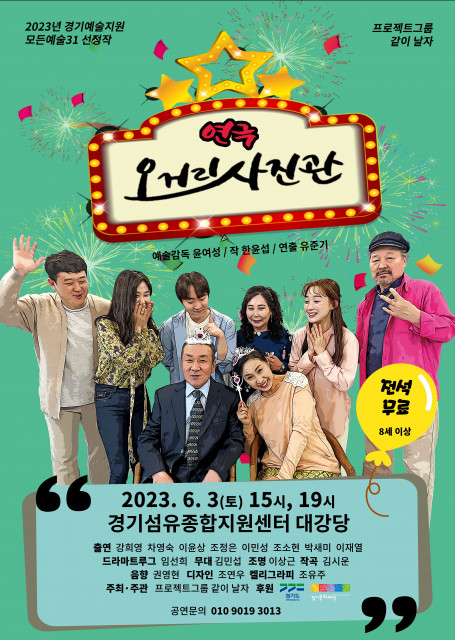 오거리 사진관은 2023년 경기예술지원 모든예술31에 선정된 한윤섭 작, 유준기 연출의 연극으로 경기도와 경기문화재단 후원을 받아 6월 3일(토) 양주 경기섬유종합지원센터 대강당에서 오후 3시, 7시 전석 무료 공연된다.