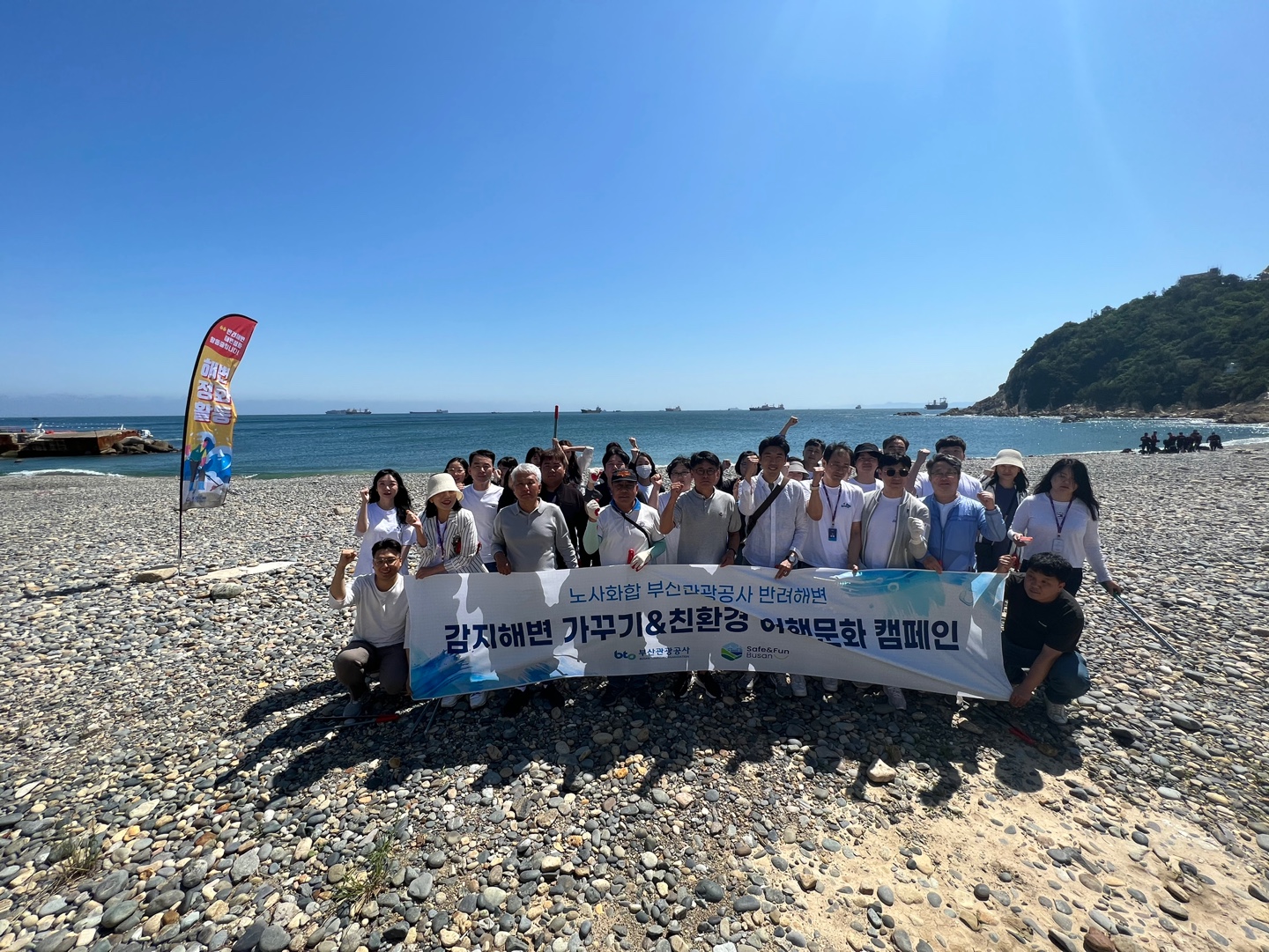 부산관광공사(이하 공사)는 5월 31일 바다의 날을 맞아 영도구 감지해변을 반려해변으로 입양하고, 노사가 함께 ‘감지해변 가꾸기 및 친환경 여행문화 캠페인’을 개최했다고 밝혔다.