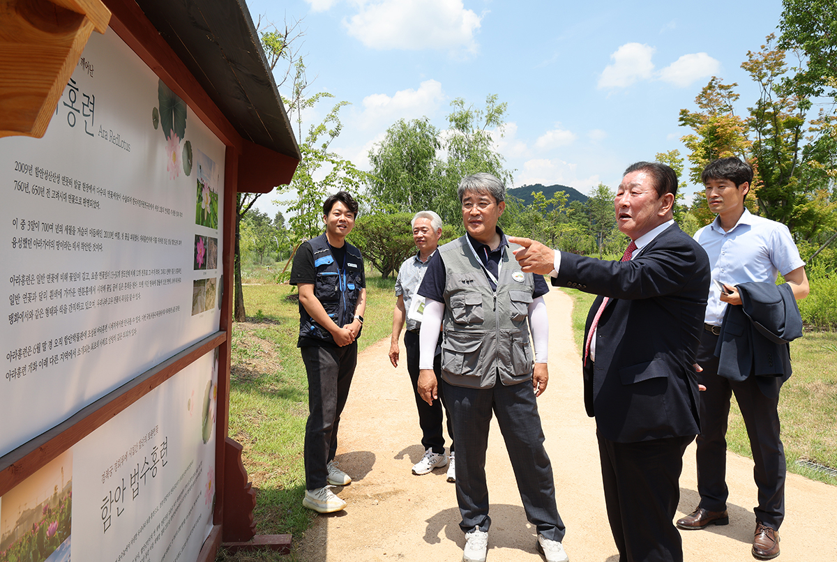 조근제 함안군수는 지난 14일 국립세종수목원에서 열린 제17회 시장·군수·구청장 산림연찬회에 참석한 후 궁궐정원과 솔찬루 등을 돌아보며 함안의 연꽃 알리기에 나섰다.