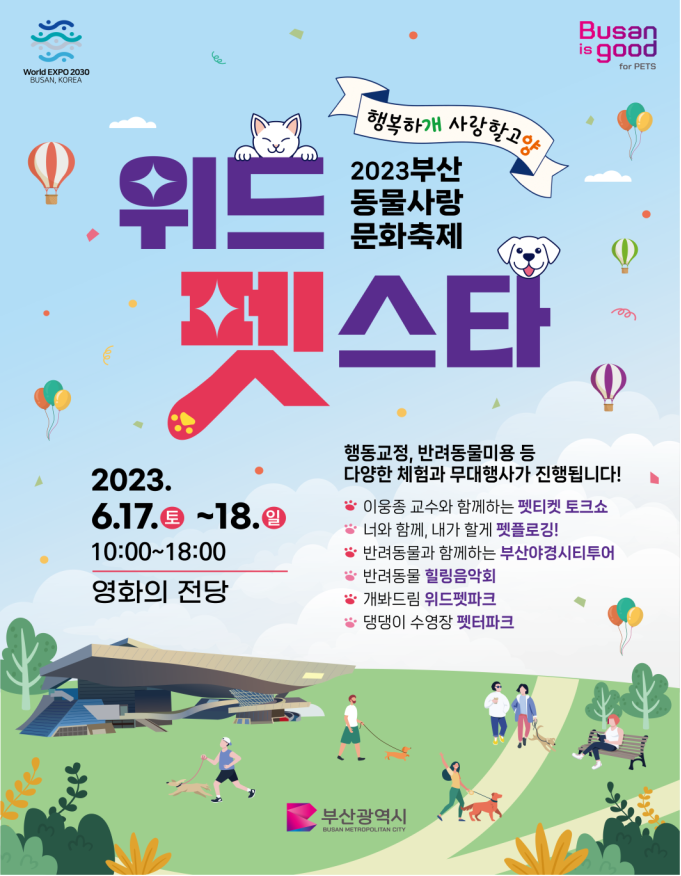 부산시(시장 박형준)는 오는 17일부터 18일까지 양일간 영화의전당에서 부산 동물사랑 문화축제 ‘2023 위드펫스타’를 개최한다고 밝혔다.