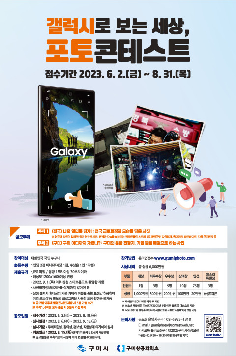 구미시와 구미상공회의소가 ‘갤럭시로 보는 세상, 포토콘테스트’ 공모전을 개최한다. 공모 접수는 8월 31일(목)까지 가능하다.