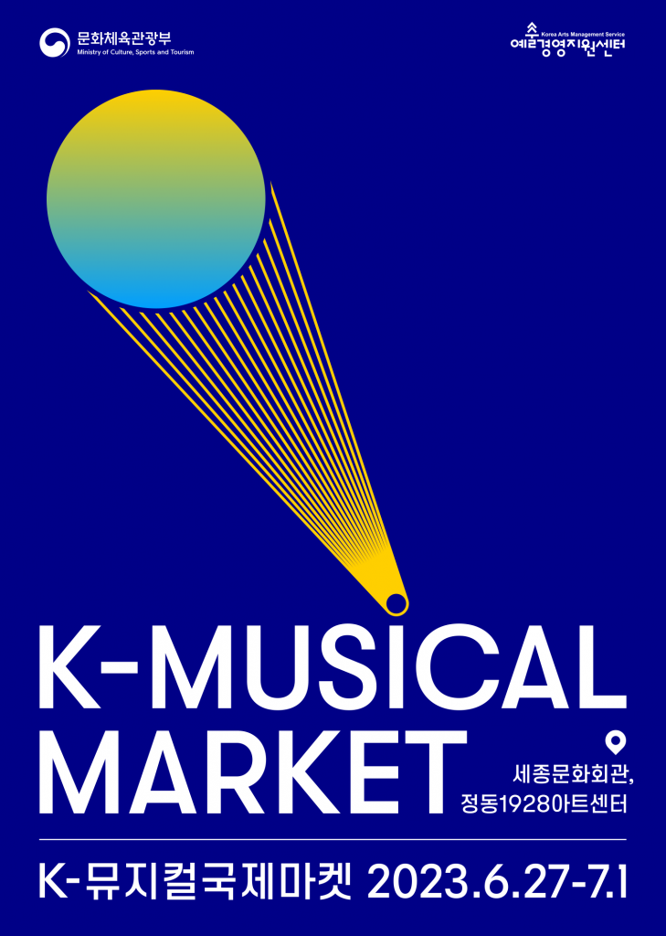 문화체육관광부(장관 박보균, 이하 문체부)는 (재)예술경영지원센터(대표 문영호)와 함께 K-뮤지컬의 해외 진출에 날개를 달아줄 ‘2023 K-뮤지컬 국제마켓’을 6월 27일(화)부터 7월 1일(토)까지 세종문화회관과 정동1928에서 개최한다.