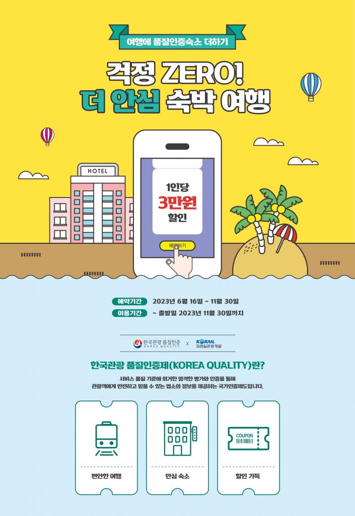문화체육관광부(이하 문체부)와 한국관광공사(이하 공사)는 6월 28일부터 코레일관광개발과 함께 한국관광 품질인증업소 숙박 여행상품을 출시한다.