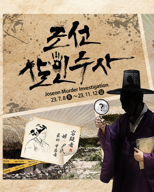 한국민속촌은 관람객이 직접 암행어사가 돼 살인사건을 추리하는 신규 콘텐츠 ‘조선살인수사’를 7월 8일 토요일에 오픈한다고 밝혔다. 조선살인수사는 11월 12일(일)까지 금, 토, 일 및 공휴일간 진행된다.