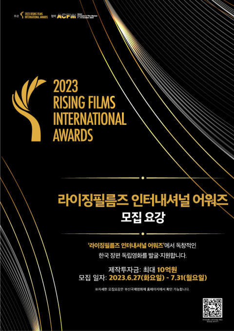 대만의 라이징필름즈가 주관하고 부산국제영화제 아시아콘텐츠&필름마켓이 협력하는 제1회 ‘라이징필름즈 인터내셔널 어워즈’는 국제영화시장으로 진출할 잠재성 있는 콘텐츠의 발굴을 기대하며 최종 선정작에 최대 10억원의 제작 투자금을 지원한다.