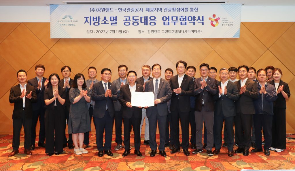 한국관광공사(이하 공사)와 ㈜강원랜드(이하 강원랜드)는 강원랜드 유휴시설 등 폐광지역 관광 활성화를 통한 지방소멸 공동 대응을 위해 7월 11일 강원랜드 그랜드호텔에서 업무협약을 체결했다.