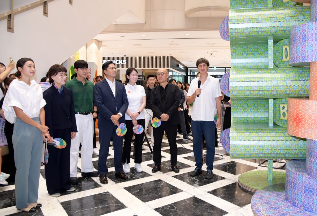 이날 팝업 전시는 이탈리아 시모네 카레나(Simone Carena)·마르코 브르노(Marco Bruno)·쥴리아 네스폴리(Giulia Nespoli), 한국 김민지 작가가 광주디자인비엔날레 D-50을 기념해 공동으로 만든 ‘Meet & Eat’ 작품이 공개됐다.