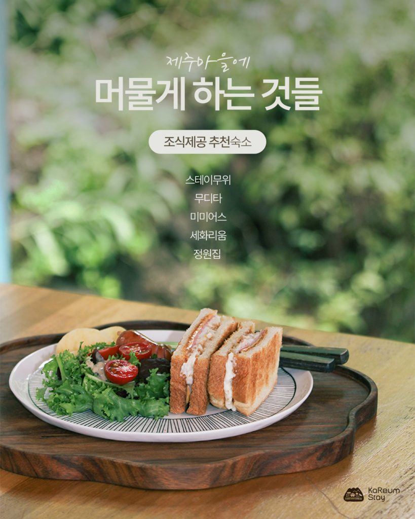제주특별자치도와 제주관광공사(사장 고은숙)는 26일 마을 주민들이 직접 선정한 ‘제주 마을에 머물게 하는 것들 2탄 : 맛있는 조식이 제공되는 마을 숙소 5선’을 비짓제주 홍보 채널과 카름스테이 홈페이지에 공개했다.