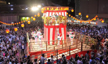 ‘온도(音頭)’라고 하는 특유의 리듬에 맞춰 춤을 추는 ‘봉오도리(盆踊り)’. 롯폰기힐스에서는 롯폰기힐스만의 오리지널 음악에 맞춰 전통 의상인 ‘유카타(浴衣)’를 입은 사람들이 춤추는 모습을 구경할 수 있으며 참여도 할 수 있다.