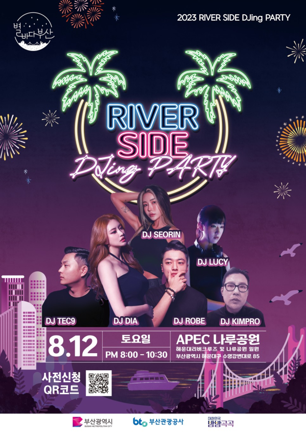 「리버사이드 디제잉 파티」는 오는 12일 오후 8시부터 공원 내 해운대리버크루즈 주변이 국내 유명 디제이(DJ)들이 출연하는 야외클럽으로 변신하는 행사다.