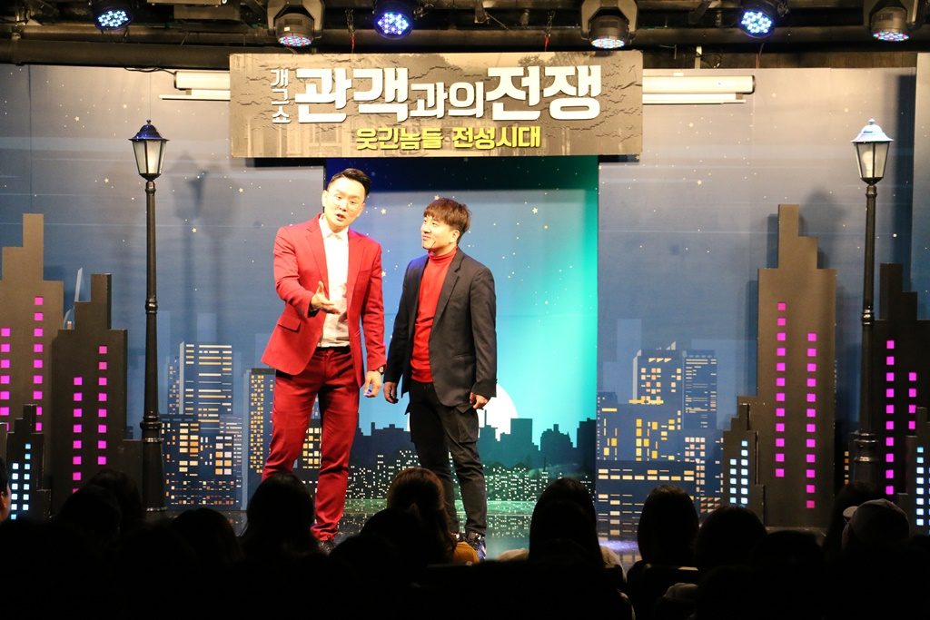 개그쇼 ‘관객과의 전쟁’은 부산에서 시작해 2011년부터 현재까지 관객들에게 많은 사랑을 받아온 공연이다. 부산공연 1년 만에 54회 연속 매진 및 2022년 연말 예매율 1위와 누적 30만 관객을 기록한 공연계 스테디셀러이다.