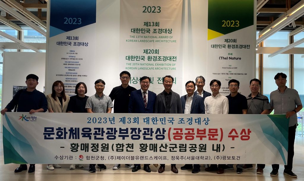 합천군(군수 김윤철)은 지난 13일 수원시 복합문화공간 111CM에서 개최된 “2023 제13회 대한민국 조경대상” 시상식에서 합천 황매산 황매정원이 문화체육관광부장관상을 수상했다고 14일 밝혔다.