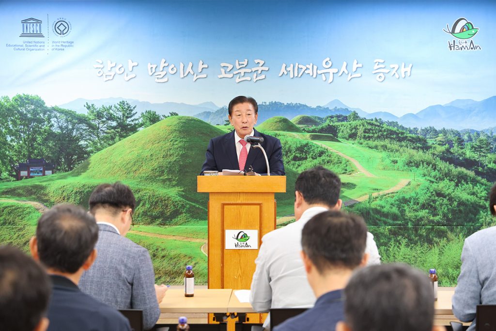 특히, 조 군수는 “11월 중 가야고분군 세계유산 등재기념식을 함안군이 개최할 수 있도록 총력을 다하겠다”면서 “이를 계기로 2042년 가야건국 2000년을 앞둔 가야문화의 미래비전을 함안이 열어갈 수 있도록 여러분께서도 다시 한번, 힘을 모아 주시기 바란다”고 강조했다.