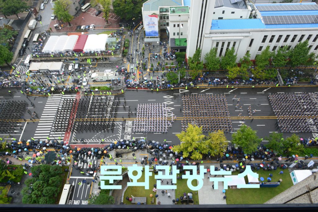 이날 서울 중구 숭례문 로터리부터 종로구 경복궁까지 인근 교통이 통제됐고, 서울시청부터 광화문까지 세종대로 차량 통행도 전면 제한됐다.