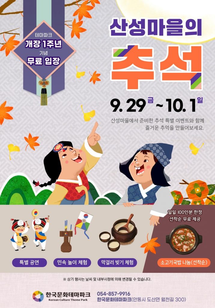 한국문화테마파크(대표 김명섭)는 오는 29일부터 10월 1일까지 민족의 대명절 추석을 맞아 온 가족이 함께 참여할 수 있는 특별한 추석 이벤트 행사를 진행한다.