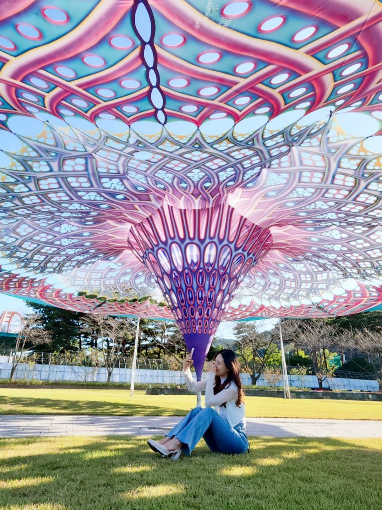 5일 서동생활공원에는 축제 조형물을 배경으로 사진을 찍으려는 관광객들이 많았다. 특히 올해는 형형색색의 아트쉐이드(차광막)와 해파리 광섬유 전구 등 조명을 활용해 화려하게 꾸며진다. 기오름 마당 전체가 리치아트 라이트 테마공원으로 변신하는데 이곳은 빛으로 형상화된 이색적인 힐링아트 공간으로 관광객들의 눈길을 사로잡고 있다.