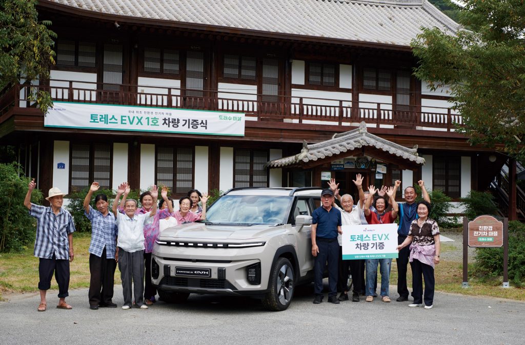KG 모빌리티는 “유네스코가 지정한 지질공원 특화마을(지오빌리지.Geo-Village)‘도래수 마을’이400년 역사에 걸맞게 자연이 훼손되지 않고 그대로 보존된 친환경 이미지와 가장 부합하고,‘토레스’차명과비슷한 네이밍으로이번 토레스EVX 1호차의 상징성을 극대화할 수 있다는 점에서 기증 행사를 마련하게 되었다”고 설명했다.