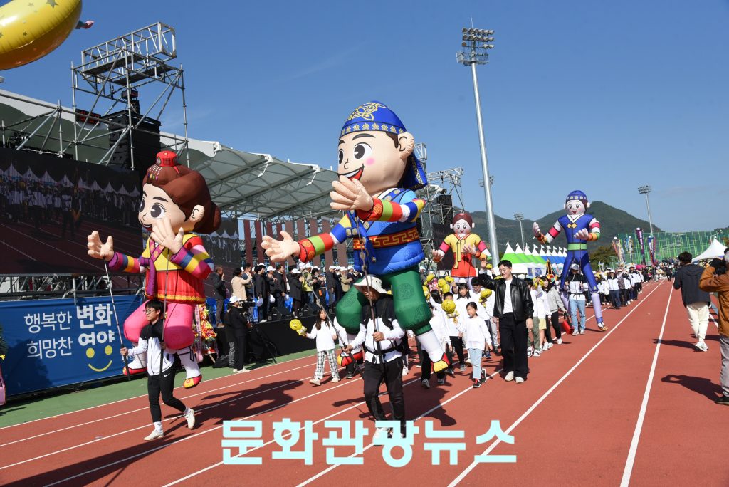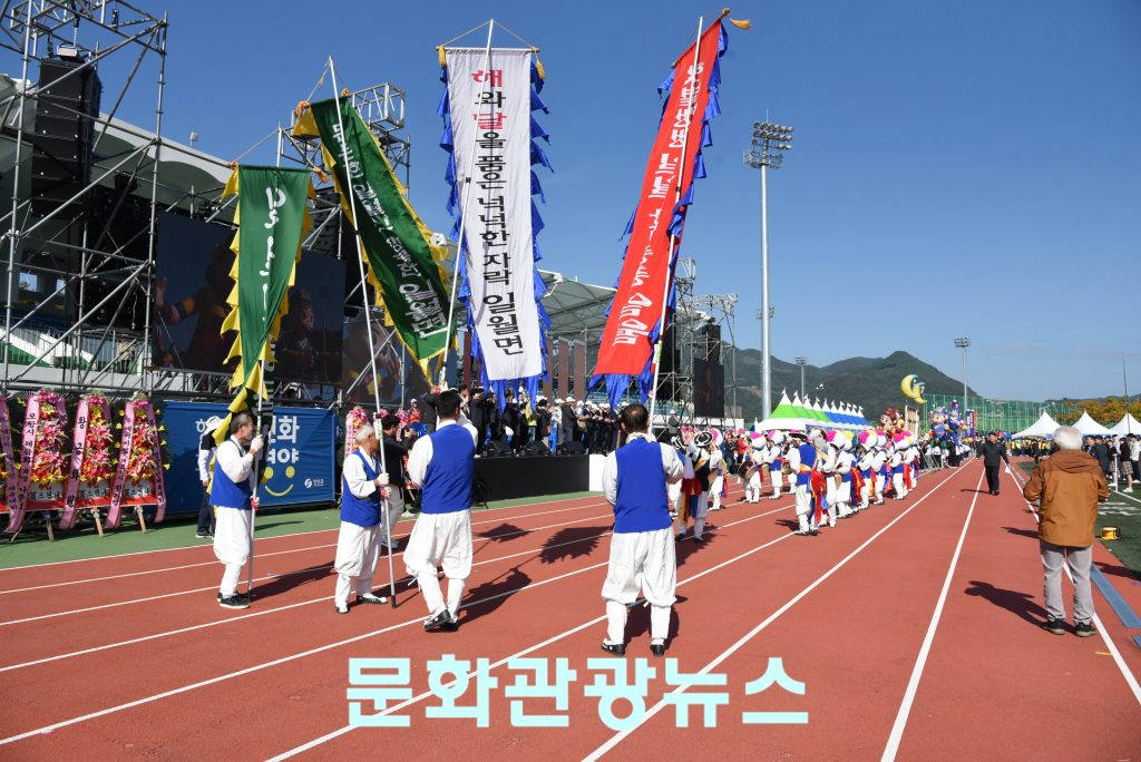 읍면 선수들은 농악대와 읍면 상징 캐릭터 등을 앞세우며 분위기를 고조시켰다.
