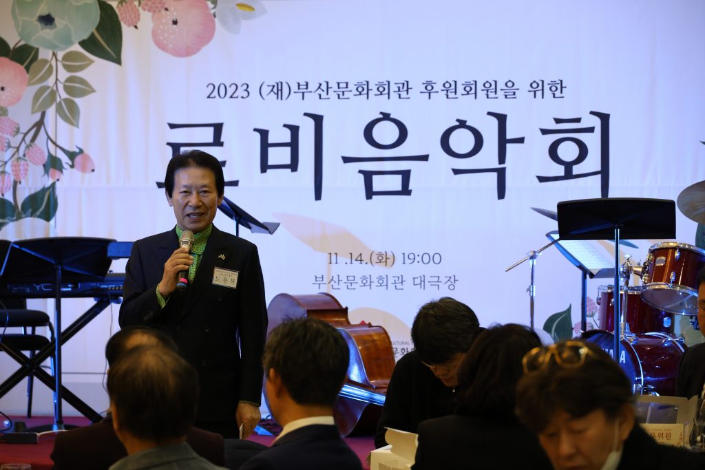 (재)부산문화회관 이정필 대표이사는 “부산문화회관을 위해 부산시립합창단 연습실 휴게공간을 조성하는 등 기관을 위해 물심양면 후원해주시는 후원회원 여러분들에게 다채로운 공연을 제공할 수 있게 되어 기쁘게 생각하고 더 많은 분들이 쉽고 편하게 부산문화회관을 방문하실 수 있기를 바란다”고 전했다.