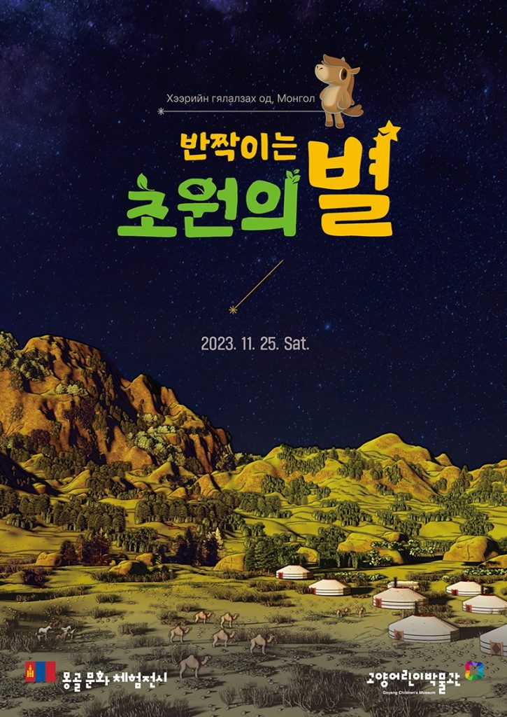 고양특례시(시장 이동환) 산하 고양어린이박물관(관장 조현영)이 어린이 가족을 대상으로 몽골 문화 체험 전시 ‘반짝이는 초원의 별’을 처음 선보인다. 전시는 11월 24일(금) 오후 3시 개막식을 이후 25일(토)부터 운영된다.
