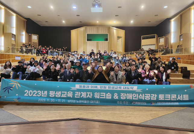 강원특별자치도는 11월 20일(월)부터 21일(화)까지 1박2일동안 춘천시 남이섬에서 “2023년 평생교육 관계자 워크숍 & 장애인식공감 토크콘서트”를 개최했다.