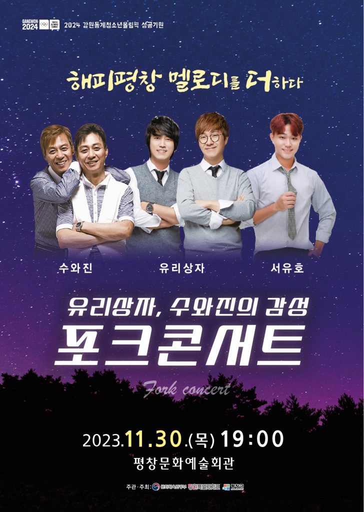 – 11월 30일(목) 19:00 평창문화예술회관, 전설적인 포크 듀오 유리상자, 수와진 공연