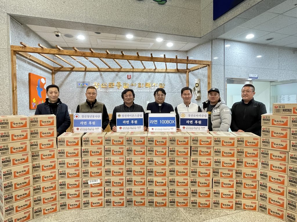 지역을 대표하는 봉사단체인 정선라이온스클럽(회장 손희륜), 정선청년봉사단(회장 이경민), 정선로타리클럽(회장 권석만)에서 11월 29일 정선군종합사회복지관에 라면100박스를 후원했다.