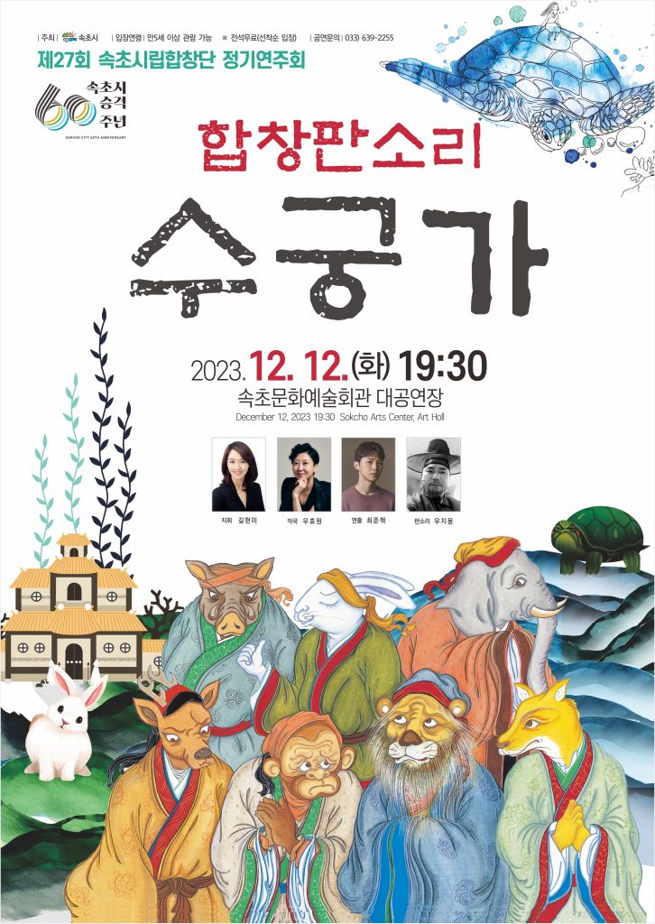 □ 속초시가 올해로 27번째를 맞이하는 속초시립합창단 정기연주회「합창판소리 수궁가」를 12일(화) 오후 7시 30분 속초문화예술회관 대공연장에서 개최한다.