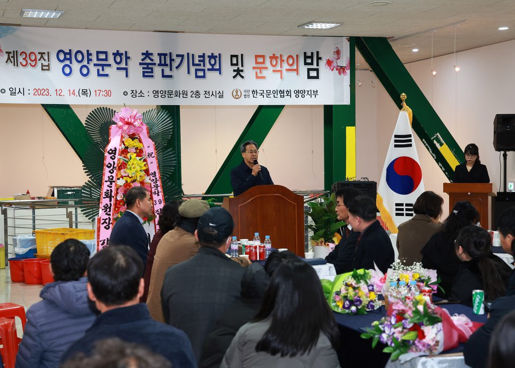 영양군(군수 오도창)에서는 (사)한국문인협회(회장 황태진) 주관으로 12월 14일(목) 오후 5시 영양문화원 2층 전시실에서 한국문인협회 회원 및 지역민들 100여 명이 참석한 가운데 제39집 영양문학 출판기념회 및 문학의 밤 행사가 개최됐다.