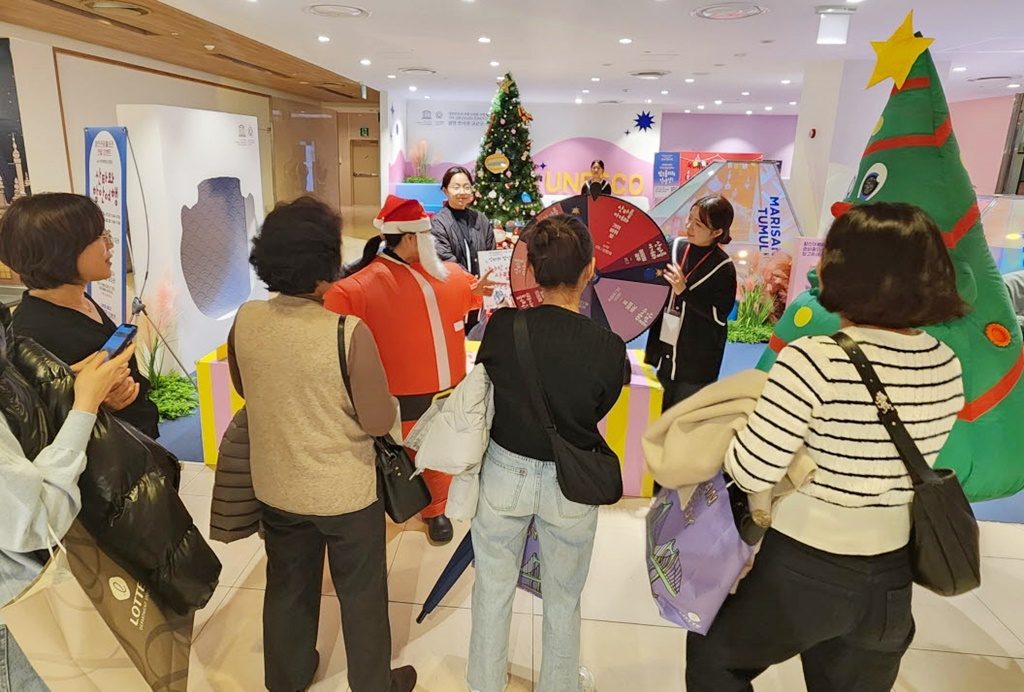크리스마스 느낌으로 단장한 함안관광 홍보관에서 산타의 진행에 따라 룰렛이벤트, 황금유물 찾기에 참여할 수 있고, 네 컷 즉석사진을 찍어 가져갈 수 있다.