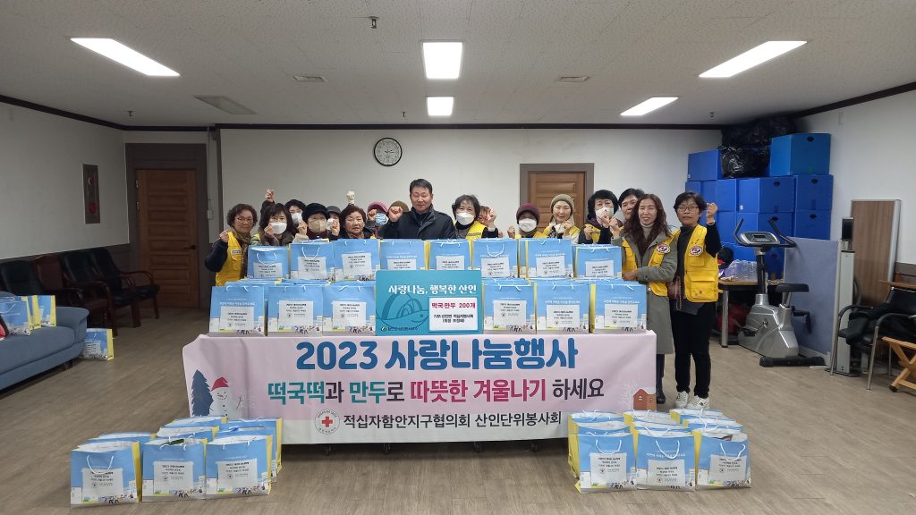 함안군 산인면 적십자봉사회(회장 조정혜)는 지난 18일 산인면사무소에서 회원 30여 명이 참여한 가운데 ‘2023 사랑 나눔(따뜻한 겨울나기)’ 행사를 가졌다.