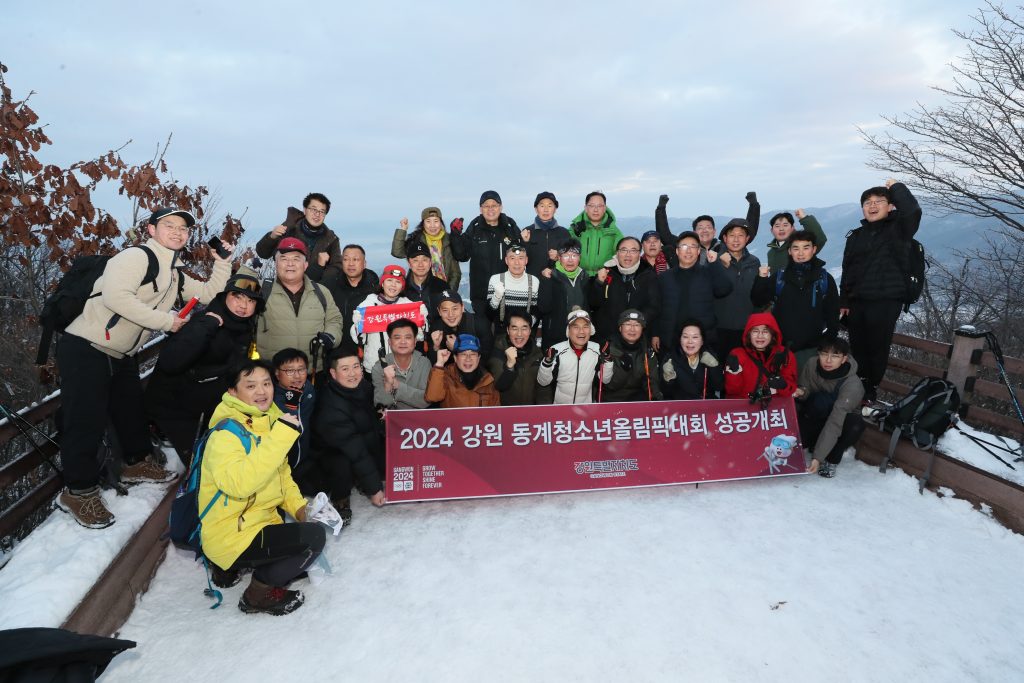김진태 강원특별자치도지사가 도청 실국장 및 직원 30여 명과 함께 금병산 해맞이 산행을 시작하며, 2024년 새해 첫 일정을 시작하였다.