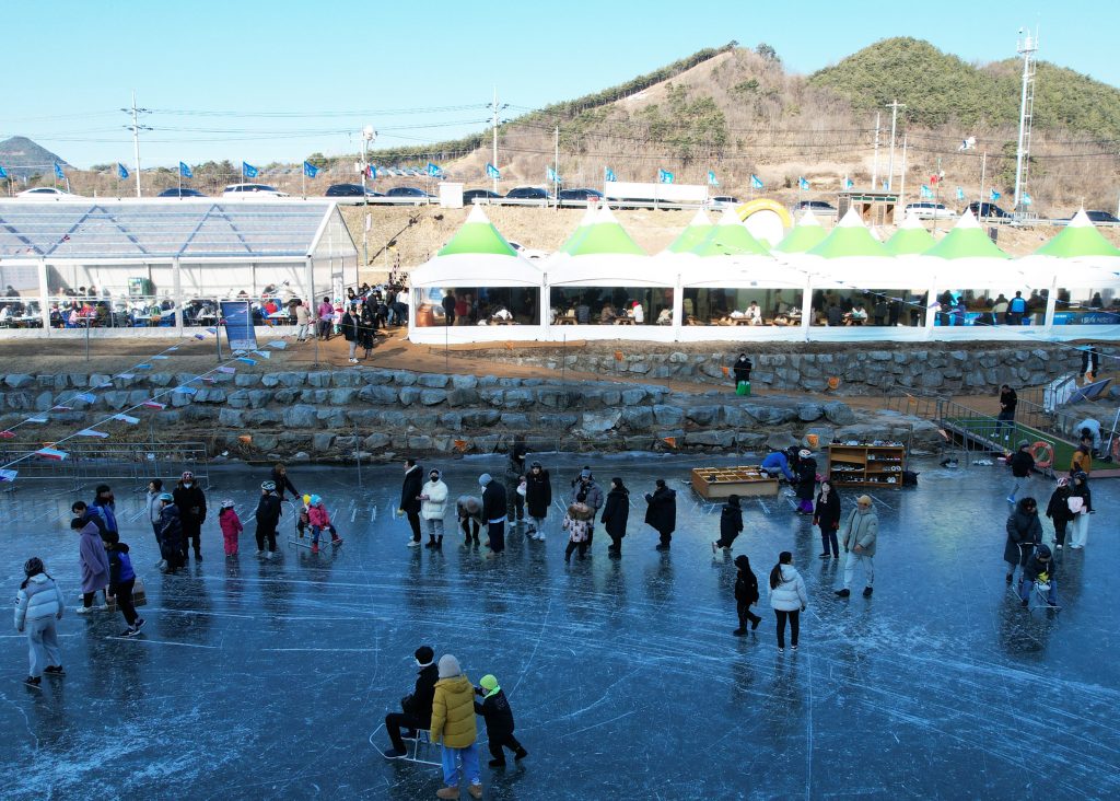 이상기온으로 높아진 기온 때문에 겨울 축제들이 줄줄이 취소되는 가운데 현리 빙상장은 매일 20cm 이상의 얼음 두께를 유지해 안전하게 ‘꽁꽁 겨울축제’를 진행할 수 있었다.