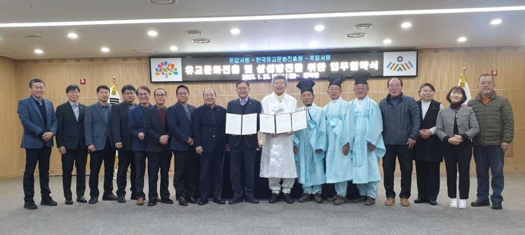한국유교문화진흥원(원장 정재근, 이하 한유진)은 24일 돈암서원(원장 김선의), 죽림서원(원장 김선의)과 ‘유교문화 진흥 및 상생발전’을 위한 업무협약을 체결했다.