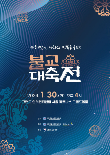 사단법인 한국불교종단협의회는 1월 30일(화) 오후 4시부터 그랜드 인터컨티넨탈 서울 파르나스에서 ‘새해맞이 나라와 민족을 위한 불교 대축전’을 개최한다.