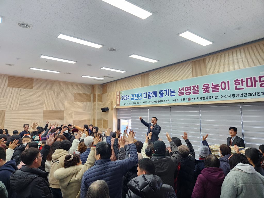 논산시(시장 백성현)는 지난 7일 갑진년 새해를 맞이하여 논산시람꽃복지관과 논산시장애인단체연합회가 공동으로 주최한 “2024년 설맞이 명절 한마당” 행사를 성황리에 마쳤다고 8일 밝혔다.